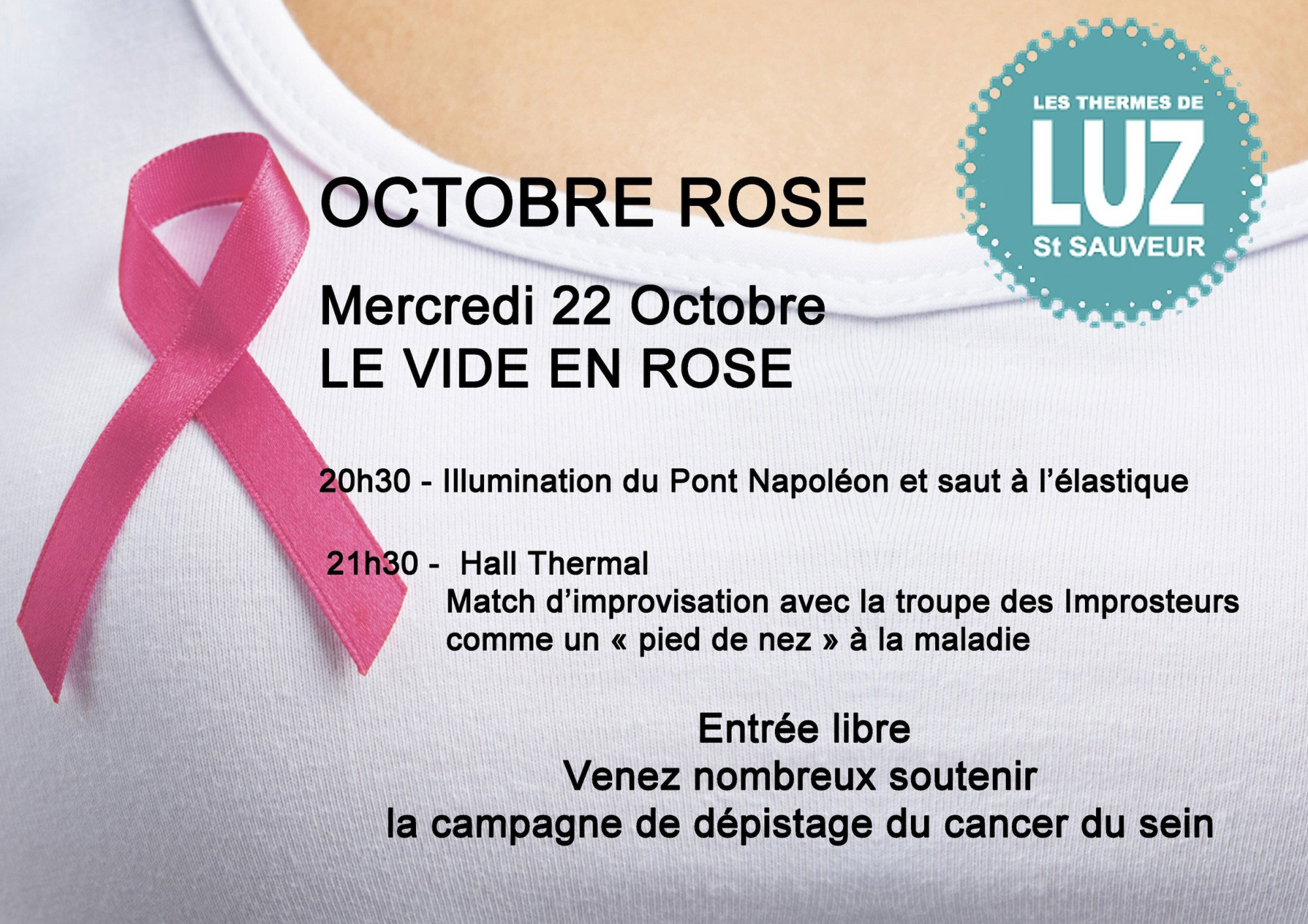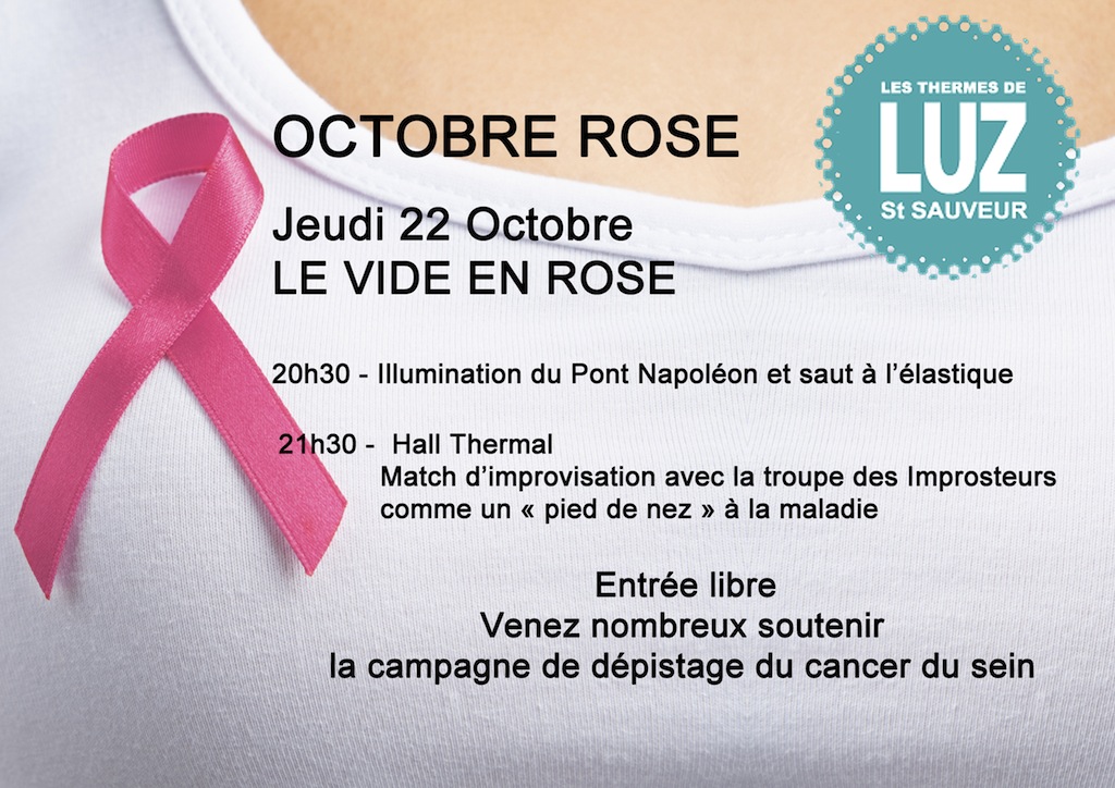 Voici le programme des animations prévues par Les Thermes et la Commune de Luz St Sauveur à l'occasion de la campagne d'information Octobre Rose :